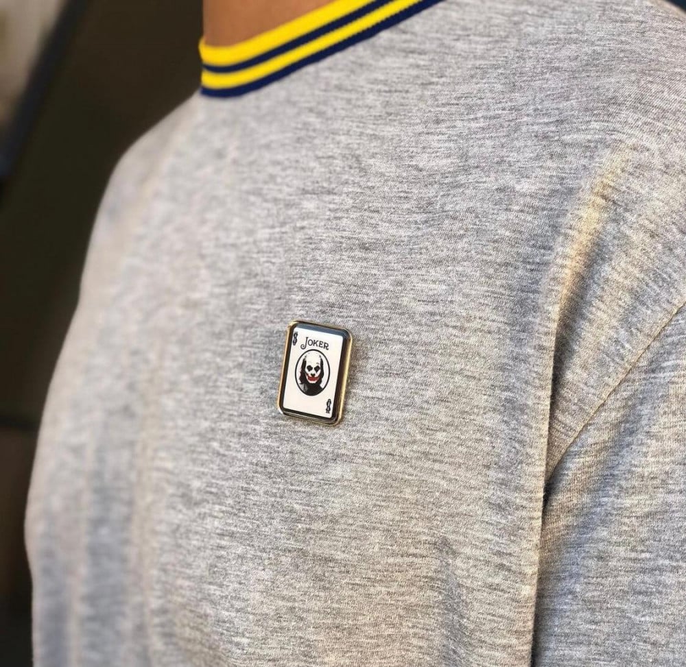 دبوس / بروش معدني أنيق يحمل تصميم رائع مقتبس من شخصية الجوكر - تصميم رائع وعملى فى المناسبات ويمكن تقديمة كهدية لمن تحب.