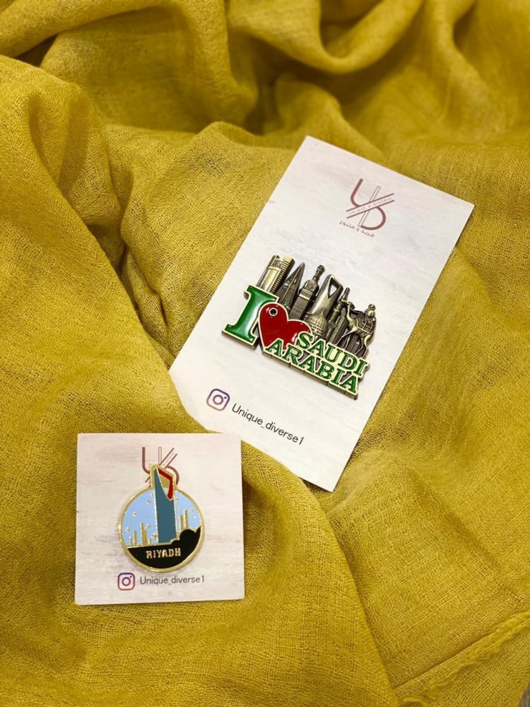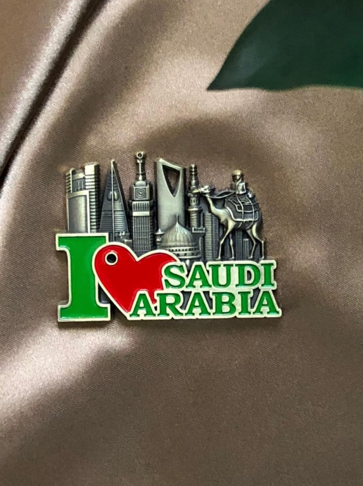 دبوس مغناطيسي بمعالم المملكة العربية السعودية ، للأسطح الممغنطة في العمل او المنزل يجسد الهوية السعودية ، الهدية الأمثل فى المناسبات الرسمية والوطنية