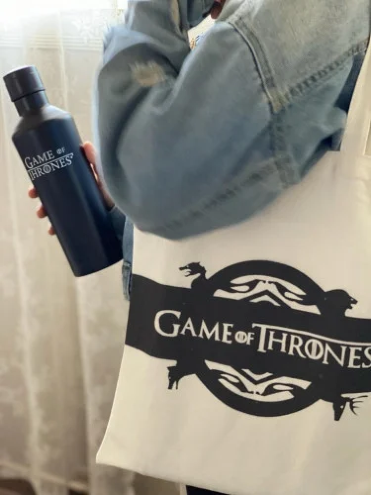 - قارورة سوداء محافظة على حرارة السوائل بتصميم مسلسل قيم أوف ثرونز.